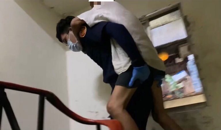 老翁散步跌坐在路旁 | 三重暖警主動攙扶走回5樓住家
