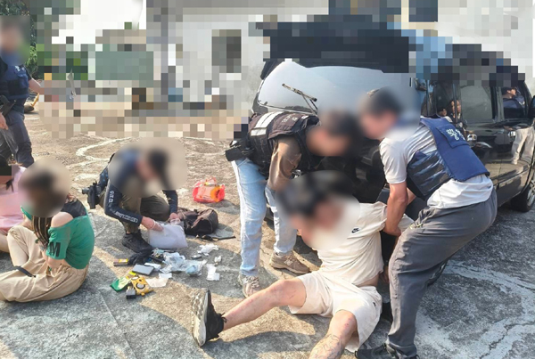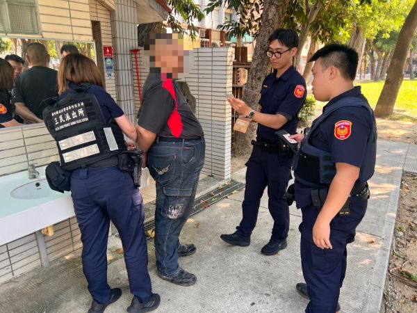 ▲員警當場逮捕正收款的詐欺車手。(圖/竹北…