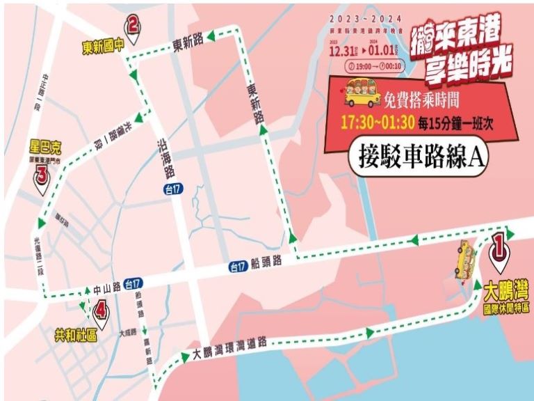 ▲路線A:東新國中-星巴克(東港門市) -共…
