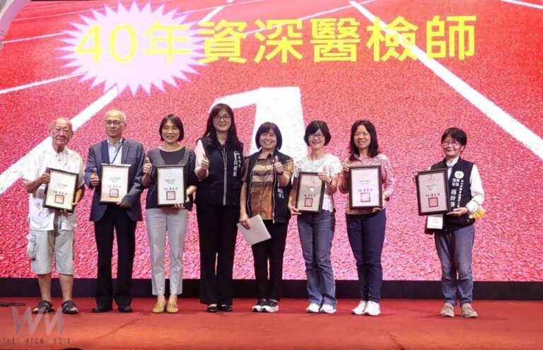 受頒服務年資滿40年醫事檢驗師。(圖/記者…