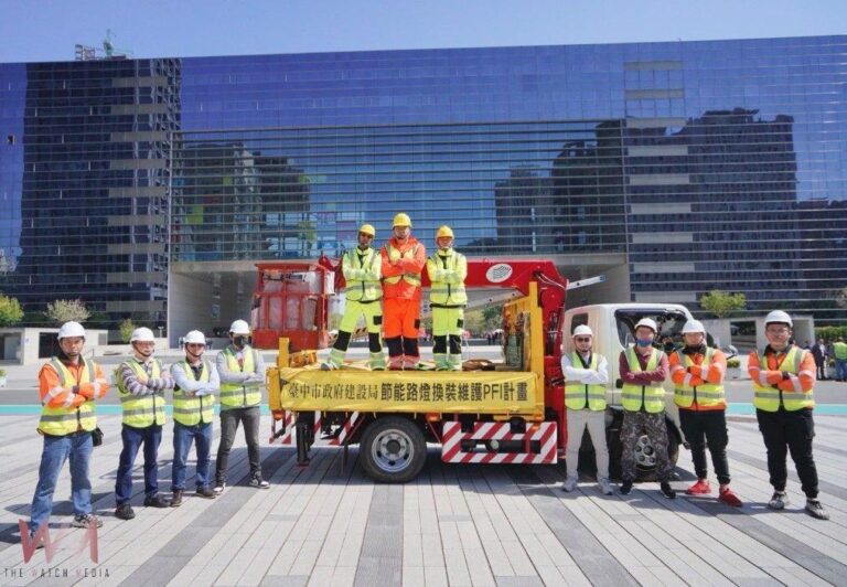 中市府建設局換裝LED路燈團隊合影。(圖/…