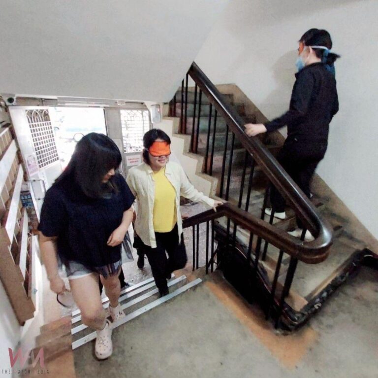 人導法練習-上下樓梯。(圖/記者廖妙茜翻…
