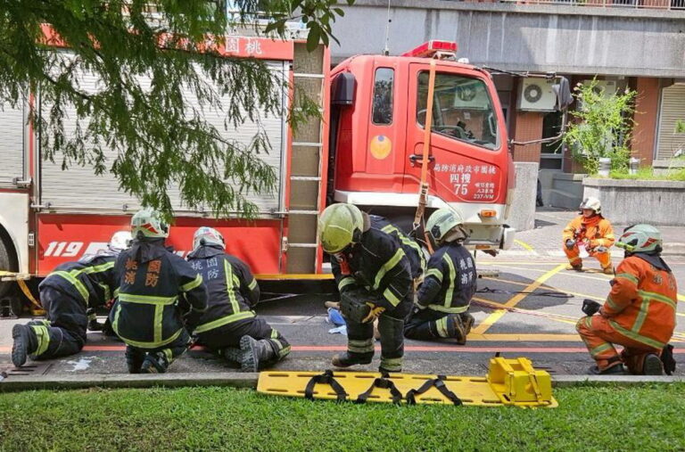 桃園消防實戰演練 力求救援零死角。 (觀…