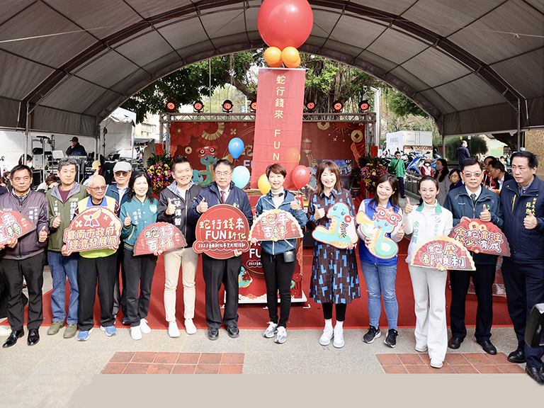 ▲金蛇迎春,鹿港鎮公所3日由鎮長許志宏率…