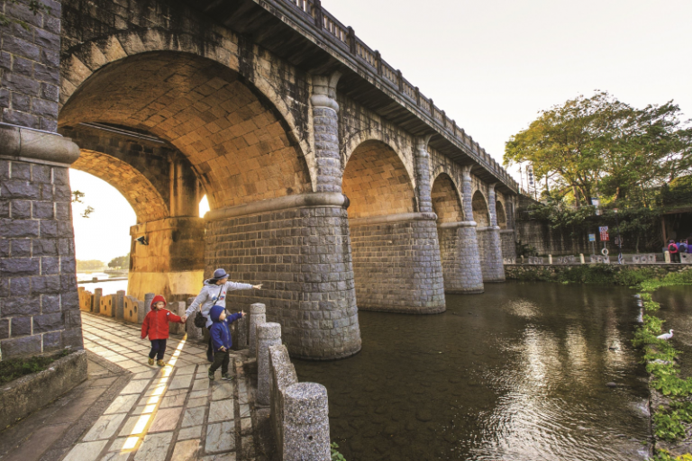 ▲新竹縣關西鎮長陳光彩於關西鎮東安古橋牛…