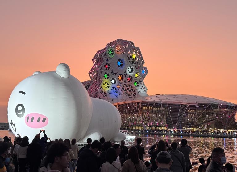 ▲高雄冬日遊樂園人潮滿滿,民眾搶拍吉伊卡…