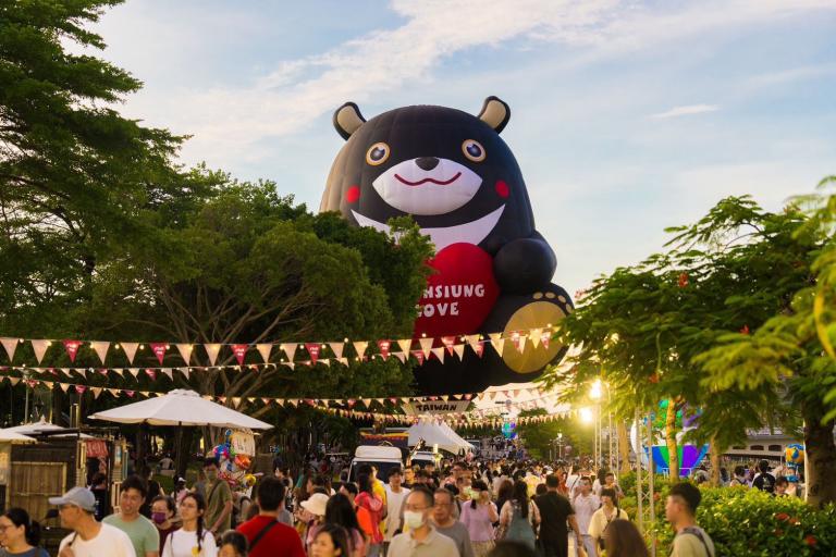 ▲高雄熊可愛造型於高雄市區升空超吸睛。(…