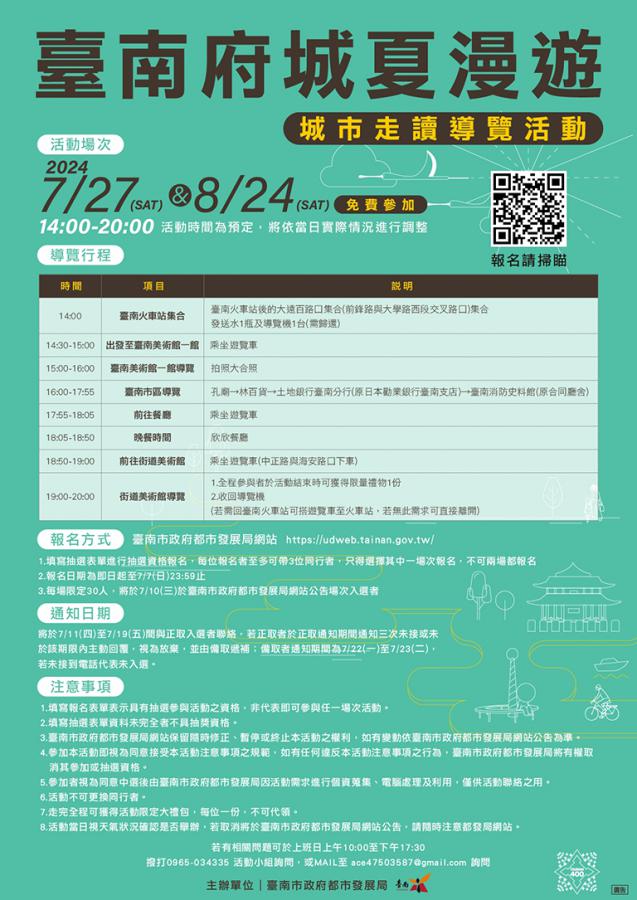 ▲臺南城市走讀導覽活動,名額有限,歡迎民…
