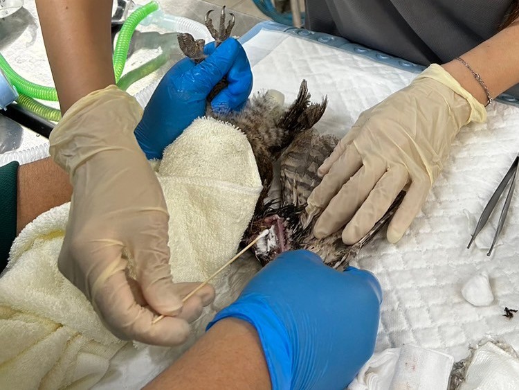 ▲翅膀受傷的領角鴞傷口清創。(圖/觀光局提…