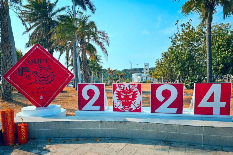 ▲高雄市各風景區大型斗方春聯供民眾拍照打…