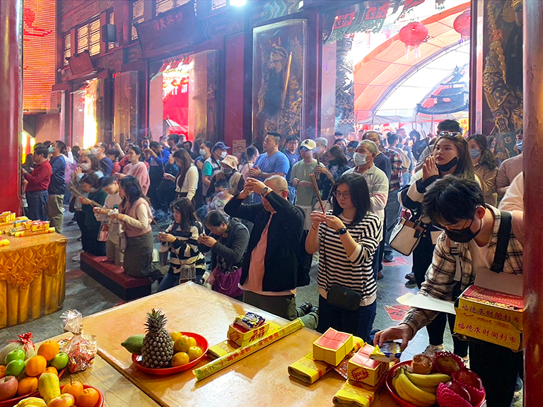 ▲土城鹿耳門聖母廟上香祈福人潮擠爆。(圖…