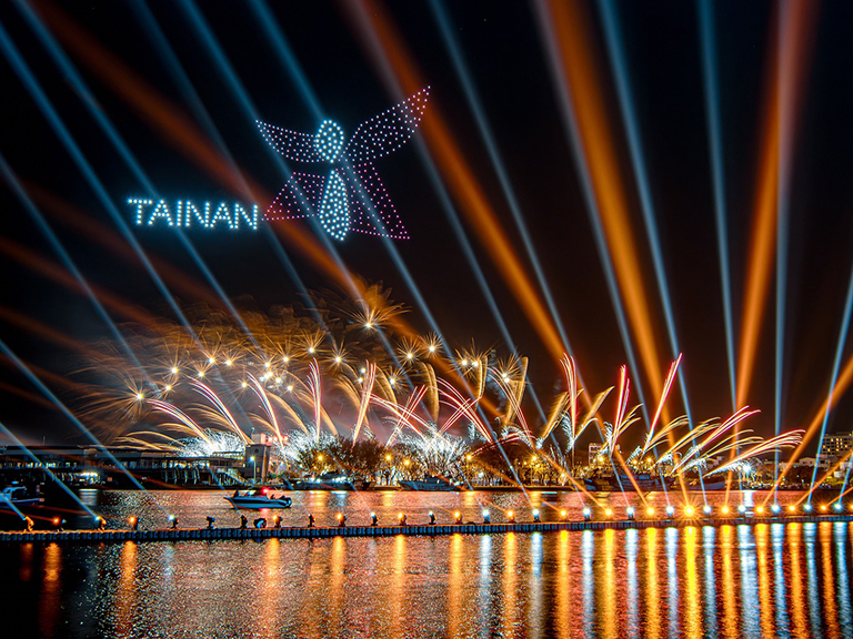 ▲安平燈區空中展演台南市徽。(圖/台南市…