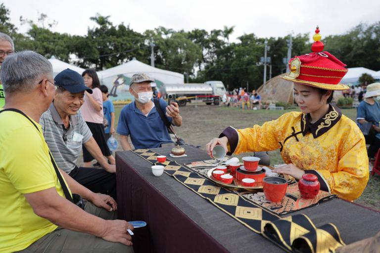 ▲南投茶博「邦尼奉茶」茶師巧扮變裝皇上奉…