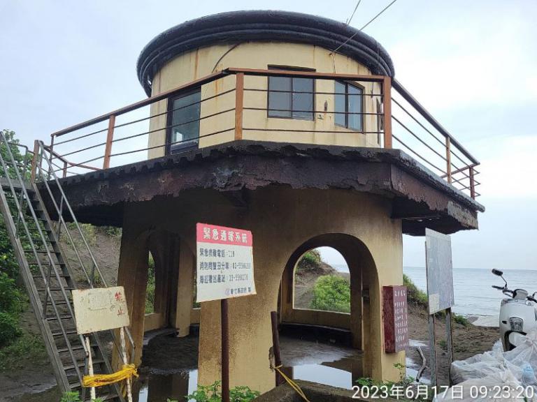 ▲新月沙灣地標瞭望亭原本黃色、鏽蝕斑斑。…