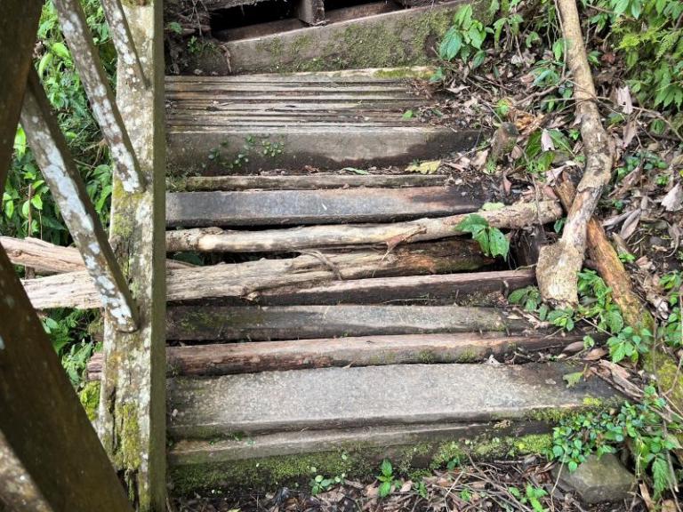 ▲東滿步道部分木造階梯基礎及踏階腐朽損壞…