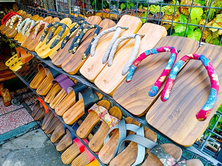 ▲日式木屐(第一排)鞋底為兩齒,夾腳點在…