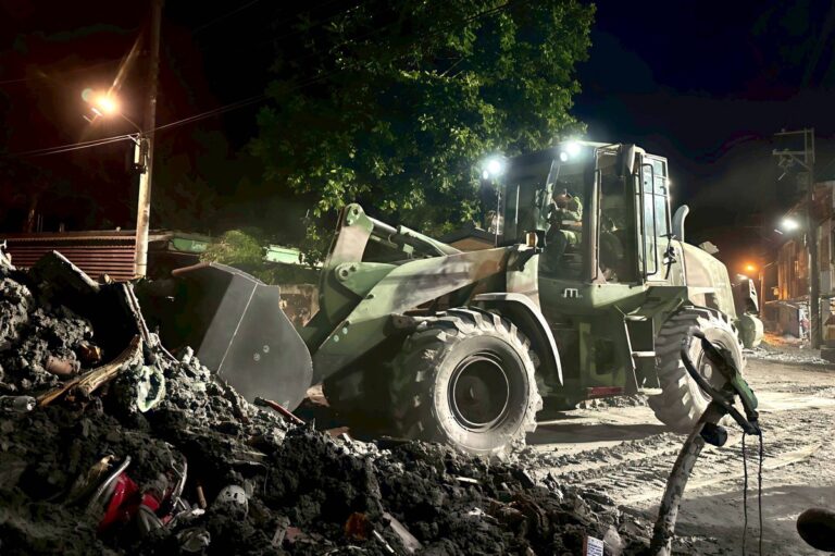 ▲第5作戰區官兵日以繼夜操作裝土機執行道…