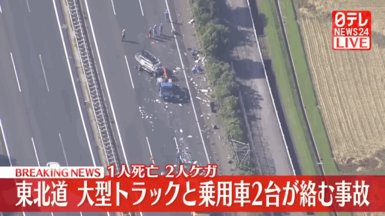 ▲日本東北道驚悚車禍!大貨車連撞2小客 1…