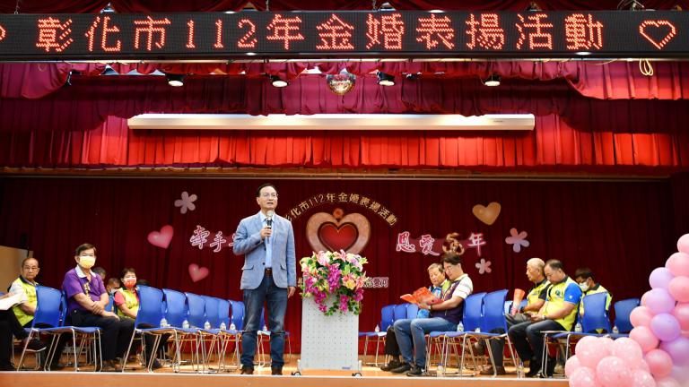 ▲林世賢市長主持彰化市金婚表揚大會期勉夫…