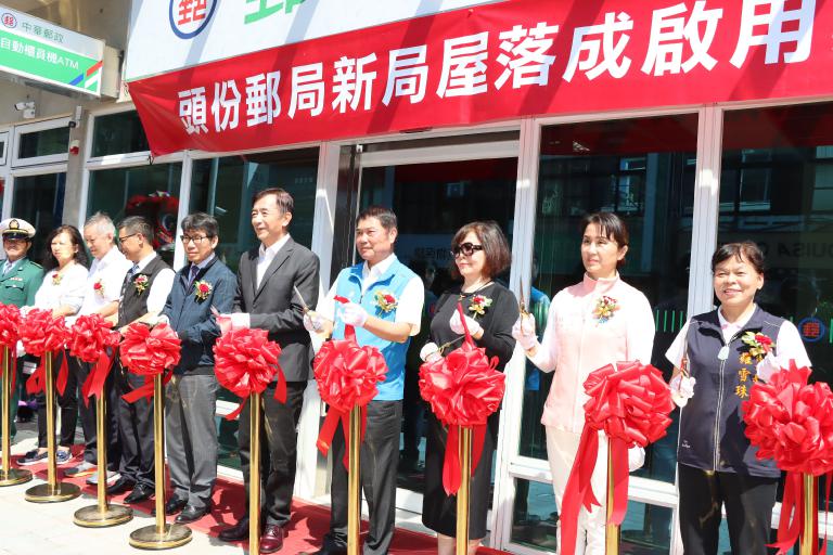 ▲新建的頭份郵局落成啟用,由縣長鍾東錦、…