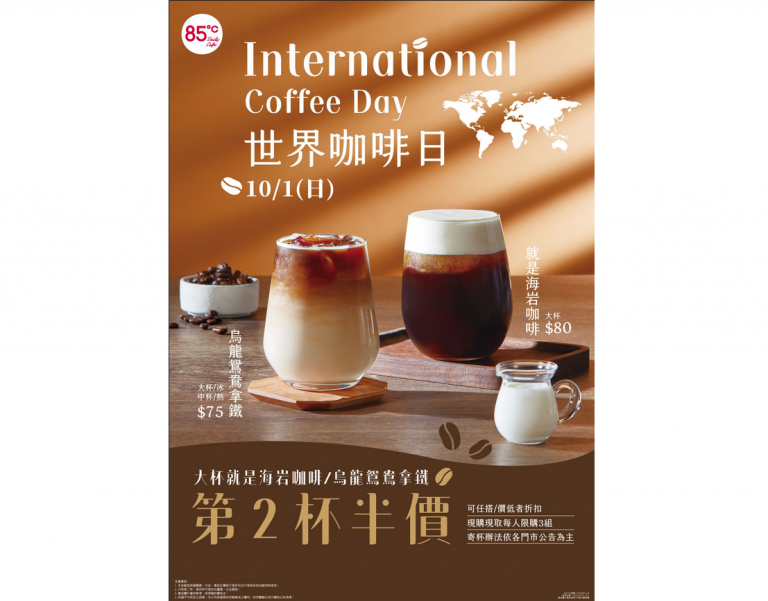 ▲10月1日世界咖啡日,85℃推出大杯就是海岩…
