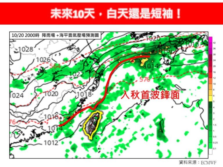 入秋首波鋒面10/20報到!中北部驟降10度 …