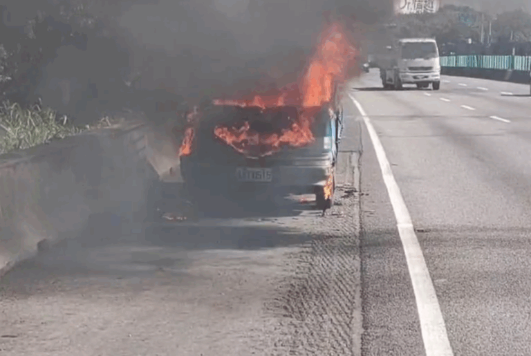 國道1號小貨車起火! 火勢猛烈濃煙沖天