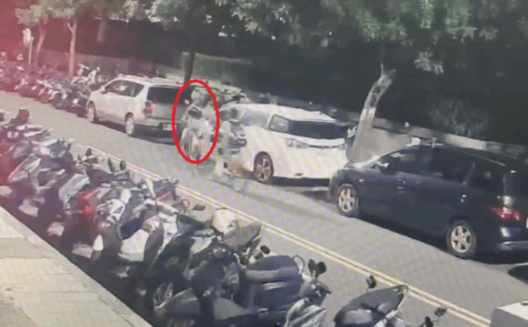 U-bike(紅圈處)撞上停路邊自小客車。翻…