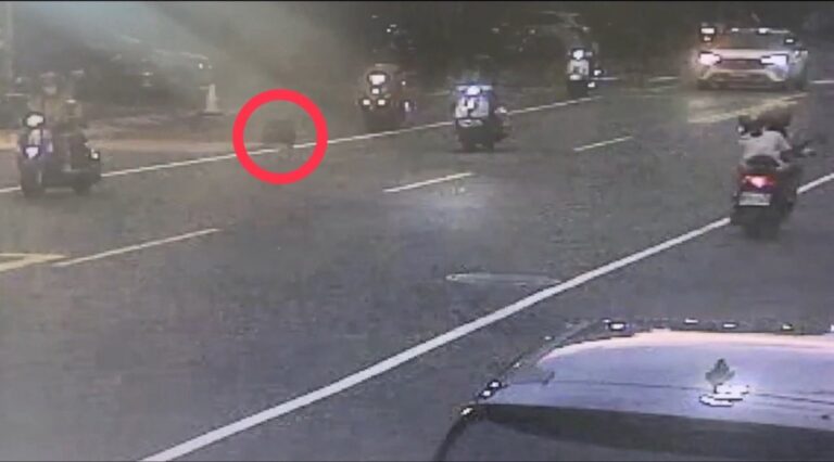 (高雄金山路路面有雜物,害騎士沒看見輾過…