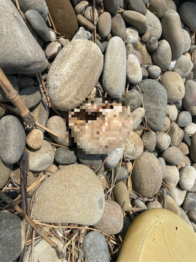 大安溪出海口出現疑似人的顱骨。翻攝畫面 …
