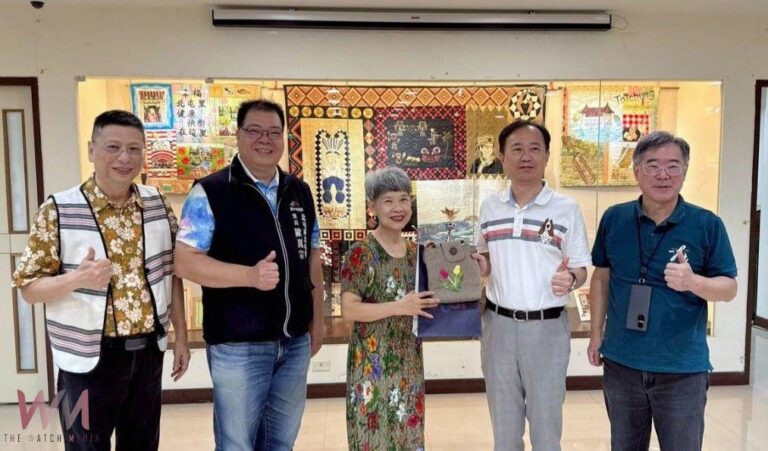 張貴櫻老師致贈拼布作品給中臺科大。(圖/…
