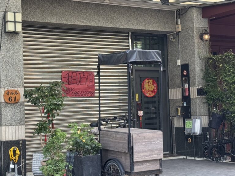 ▲「樋口飯糰」青海路舊址掛上紅色紙張寫著…