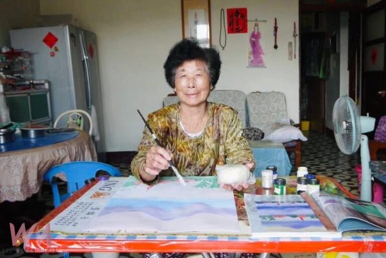 水林鄉98歲高齡的素人畫家龔張足女士,一…