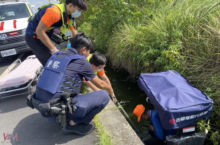 六旬失智婦女跌落在產業道路旁的水溝內受…