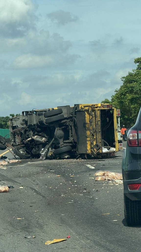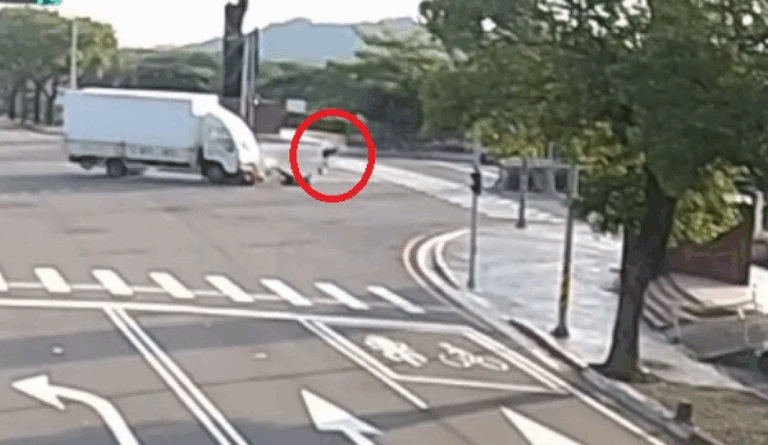 苗栗大貨車違規左轉,撞飛機車騎士及乘客…