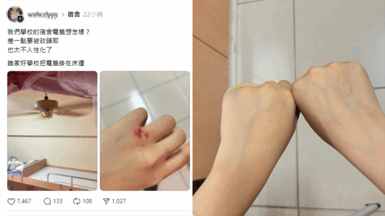 ▲宿舍電風扇成兇器!女大生嫩手被「劃傷見…