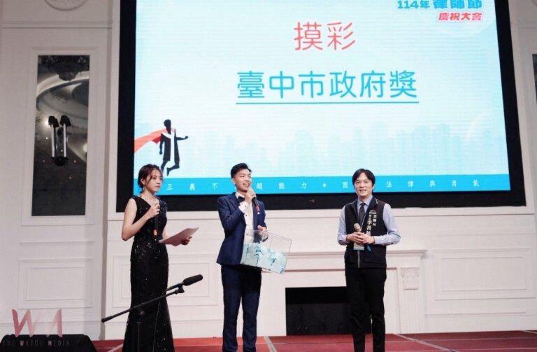 台中市法制局李善植局長(右)獻上市府祝福…