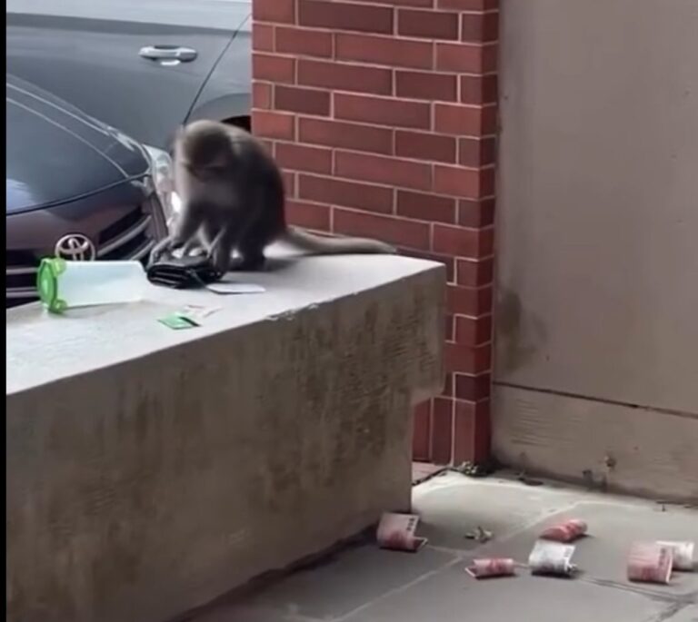 (錢包遭獼猴搶走,民眾狼狽救回鈔票跟水壺…