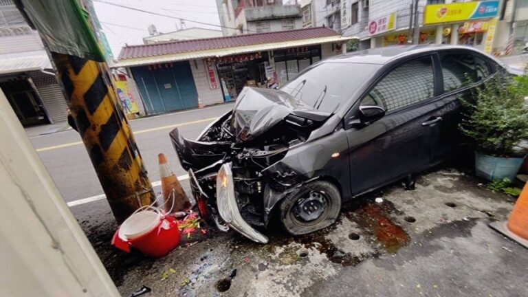 ( 潘男自稱疲勞駕駛,逆撞電桿,車頭全毀…