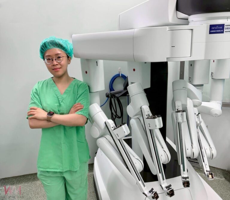 林宜右醫師和達文西機器人手術機器。(圖/…