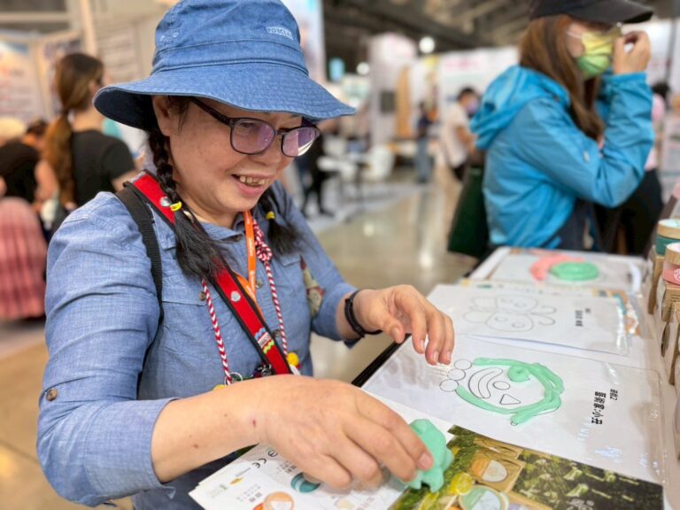 綠色照顧綠療育作品化身抱枕,長輩手持合…