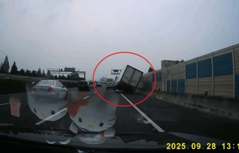 國道驚險瞬間!貨車急切車道差點翻覆 駕…