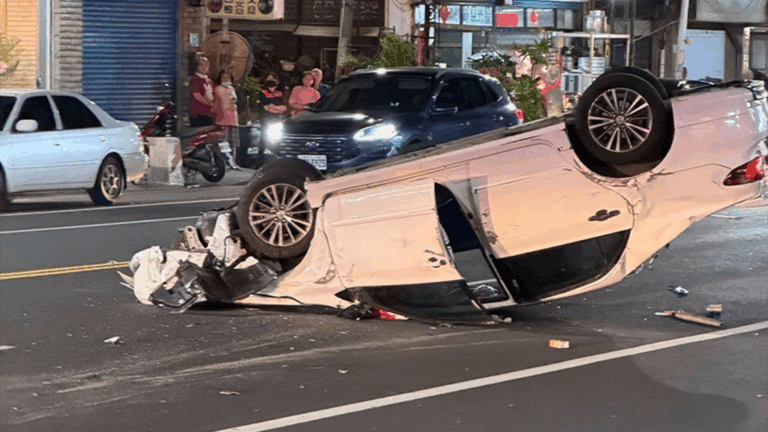▲台南新營轎車翻車!轎車「四輪朝天」翻覆…