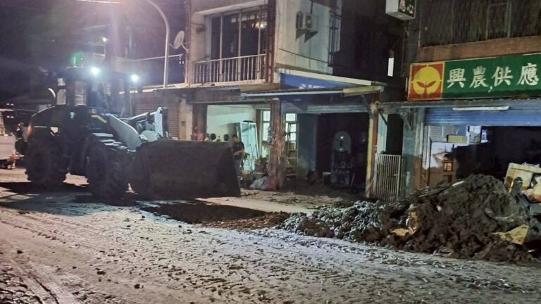 陸軍53工兵群721F裝土機夜間協助道路清淤…