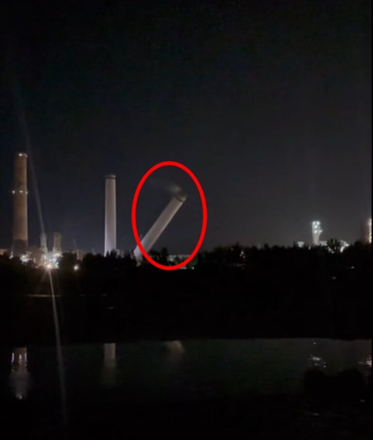 通霄電廠120公尺4號煙囪壯觀「放倒」 巨…