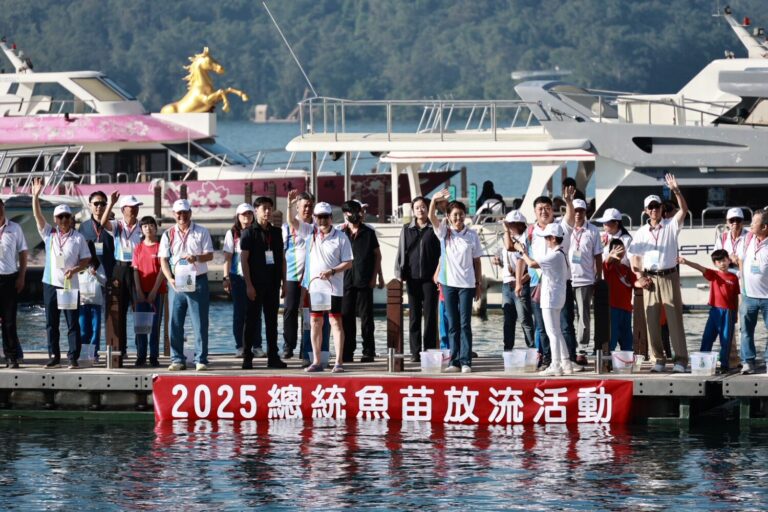 ▲萬人泳渡當天上午,縣長許淑華及馬前總統…
