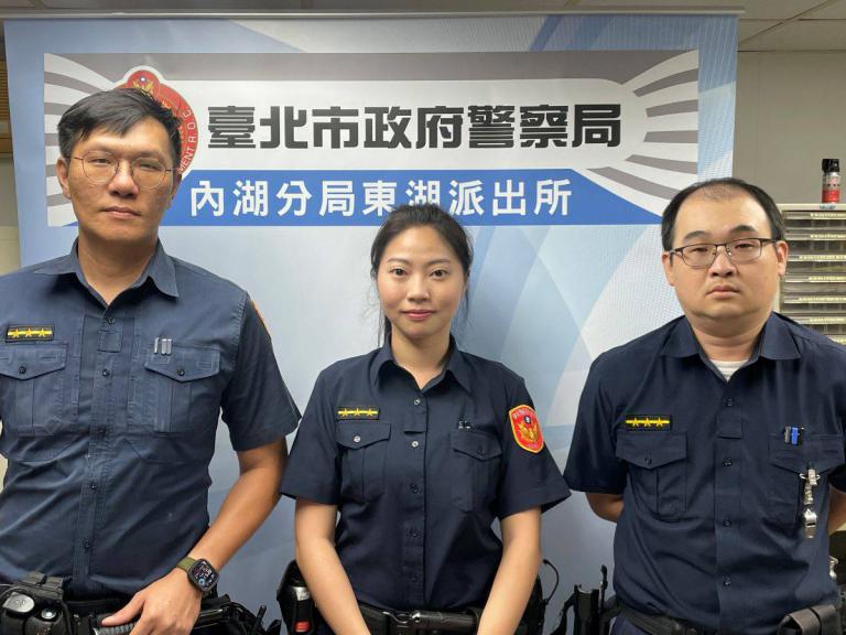 ▲東湖派出所警員謝東諭(左)、沈岱湄(中)、…