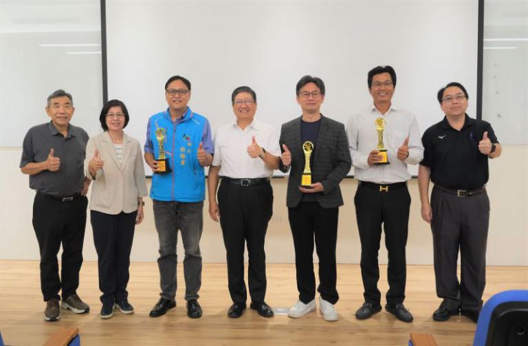 ▲縣長楊文科頒獎表揚「金竹獎」獲獎工程,…