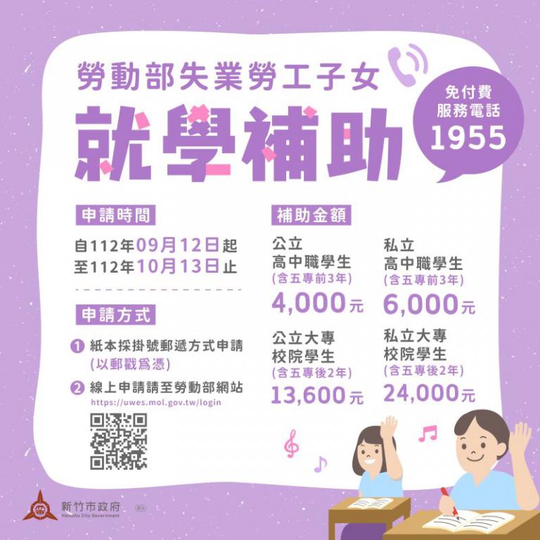 ▲失業勞工子女就學補助海報。 (圖/記者蔣…