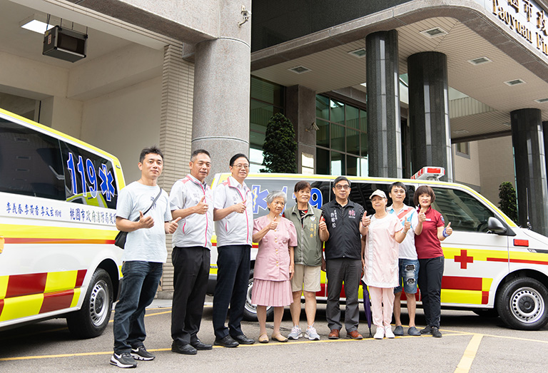 ▲感謝李黃香女士捐贈2輛救護車,桃市長:…